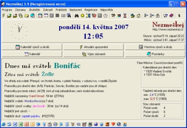 Program Nezmeškej, který je možné používat jak v české, tak i ve slovenské verzi, vás bude předem upozorňovat na blížící se svátky, narozeniny a jiná výročí, ale také na libovoné úkoly či jiné události. Časový předstih upozorňování je možno volit pro každé výročí i úkol individuálně.